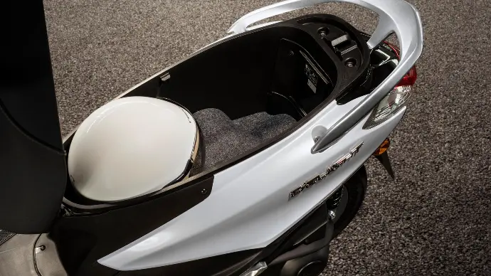 D'elight'ın selesinin altında bol miktarda bagaj bölmesi vardır, aslında sınıfındaki modeller arasında bagaj bölmesine bir kapalı kask yerleştirilebilen nadir scooter'lardandır. Bu bagaj bölmesi, siz hareket halindeyken kişisel eşyalarınızı taşımak için mükemmel bir yerdir ve fazladan bir miktar yiyecek almak için markete uğramanız gereken durumlarda da idealdir.