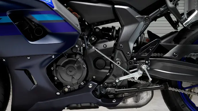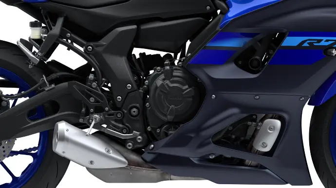 R7'nin 8750 dev/dak'da 73,4 PS sunan 689 cc CP2 motoru heyecan verici hızlanma ve anında gaz tepkisi sağlar. 270 derecelik krank mili, devir yükseldikçe canlı ve heyecan verici bir his sağlayan asimetrik bir ateşleme aralığı sunar ve doğrusal tork çıkışı, virajlardan daha hızlı çıkmak için gücü verimli bir şekilde kullanmanıza olanak tanır.