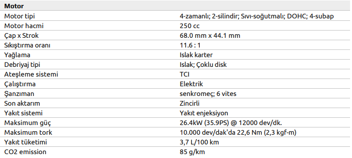 Yüksek torklu EU5+ 250 cc 2 silindirli motor