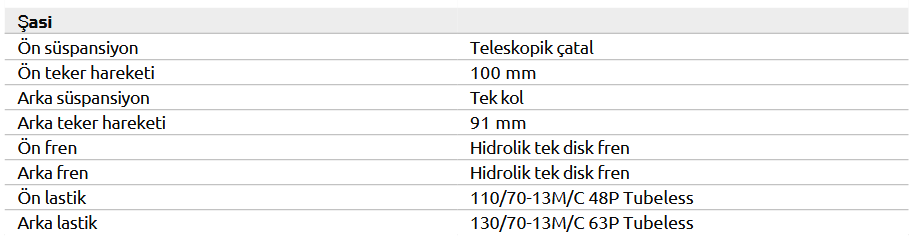 NMAX 125 Tech MAX, yüksek çekiş gücü olan 13 inç Jant, 110/70-13 ön lastik ve geniş 130/70-13 arka lastikle donatılmıştır. Güvenli frenleme için de düşük çekişli yol yüzeylerde tekerlerin kazara kilitlenmesini önleyen ABS sistemiyle donatılmış olan 230 mm'lik ön ve 230 mm'lik bir arka disk vardır.