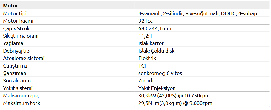 11,2:1'lik sıkıştırma oranı, üstten çift kam mili (DOHC) ve dört supaplı silindir başlığı ile 321 cc iki silindirli motor, hızlı devir artışı performansı ve yüksek devir verimi için tasarlanmıştır. R3'in 10.750 dev/dak değerinde maksimum 30,9 kW (42 PS) güç çıkışı sağlayan etkili EU5+ motoru, heyecan verici bir sürüş ve geniş yayılımlı güç ile nefes kesici hızlanma sağlar.