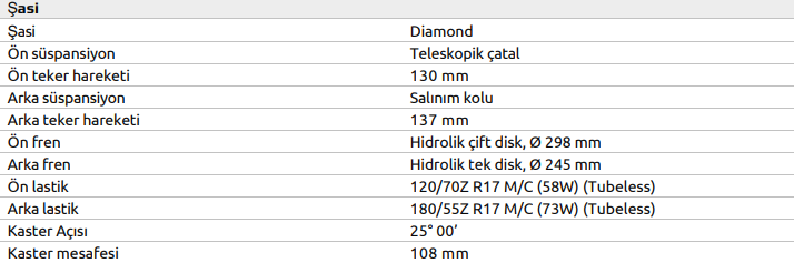 Tamamen ayarlanabilir ön ve arka elektronik süspansiyon, Hidrolik Ünite (HU) ve Süspansiyon Kontrol Ünitesini (SCU) etkinleştiren 6 eksenli IMU ve ECU tarafından yönetilir. Sönümleme ayarları, yük veya sürüş koşullarından bağımsız olarak konforlu ve güvenli sürüş sağlamak için bir solenoid aracılığıyla anında ayarlanır. Mod, TFT arayüzüyle ayarlanır.