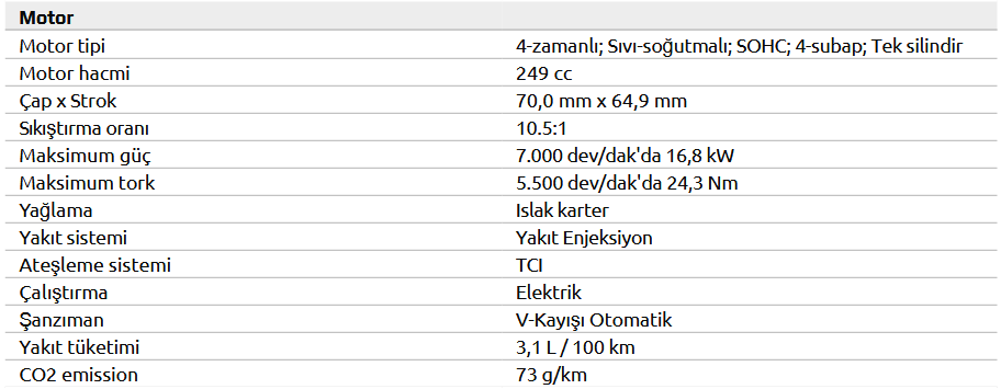 Bu premium Sport Scooter'ın her ayrıntısı, Tech MAX serisine özgü çok çeşitli gelişmiş özellikler ve ayrıntılarla sizi karşılar. Geniş ayaklik alanı alüminyum basamaklarla donatılmıştır ve aynalar ve elcik uçları bu scooter'ın mükemmel üretim kalitesini vurgular. Sınıfında lider konumundaki bu model, ön saklama bölmesinde yer alan özel kapak ve Tech MAX amblemleriyle tamamlanır.