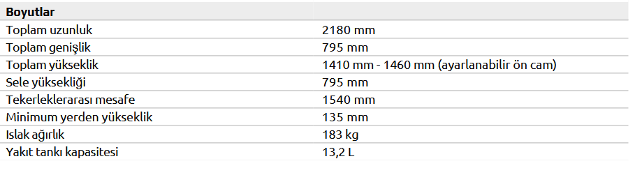 Önemli bilgileri net ve basit bir biçimde iletmek için tasarlanan 4,3 inç LCD gösterge paneli, çok çeşitli faydalı veriler görüntüler. Merkezi dijital hız göstergesinin üzerinde çubuk tarzı bir devir göstergesinin yanı sıra yakıt, motor sıcaklığı, sinyaller, uzun far gibi bilgileri gösteren çeşitli sezgisel simgeler vardır.