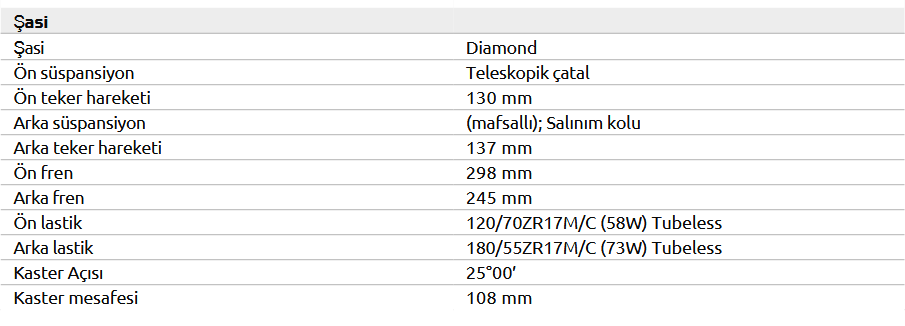 Brembo radyal ana silindirin ve size yüksek düzeyde frenleme gücü ve hassas kontrol imkanı sağlayan 298 mm çift ön disk dahil XSR900'ün teknik özelliklerinden hiçbir taviz verilmemiştir. Tamamen ayarlanabilir USD çatallar ve bağlantılı tip arka süspansiyon sistemi kolaylıkla ihtiyaçlarınıza uygun şekilde ayarlanabilir ve Yamaha'nın en yeni ve son derece hafif Spinforged jantları, hızlı tepki veren yol tutuş performansı için yaysız ağırlığı en aza indirir.