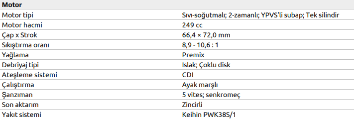 Olağanüstü 250 cc 2 zamanlı motor, ihtiyaç duyduğunuz gücü anında sağlar. Tork artırıcı YPVS (Yamaha Güç Valfi Sistemi) ile donatılmış 5 vitesli şanzımana sahip bu kompakt ve hafif ünite zorlu yarışları sever.